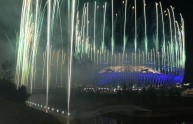 Fireworks explode over the Olympic stadium during the opening ceremony of the London 2012 Olympic games on July 27, 2012. AFP PHOTO / CARL DE SOUZA (Photo credit should read CARL DE SOUZA/AFP/GettyImages)